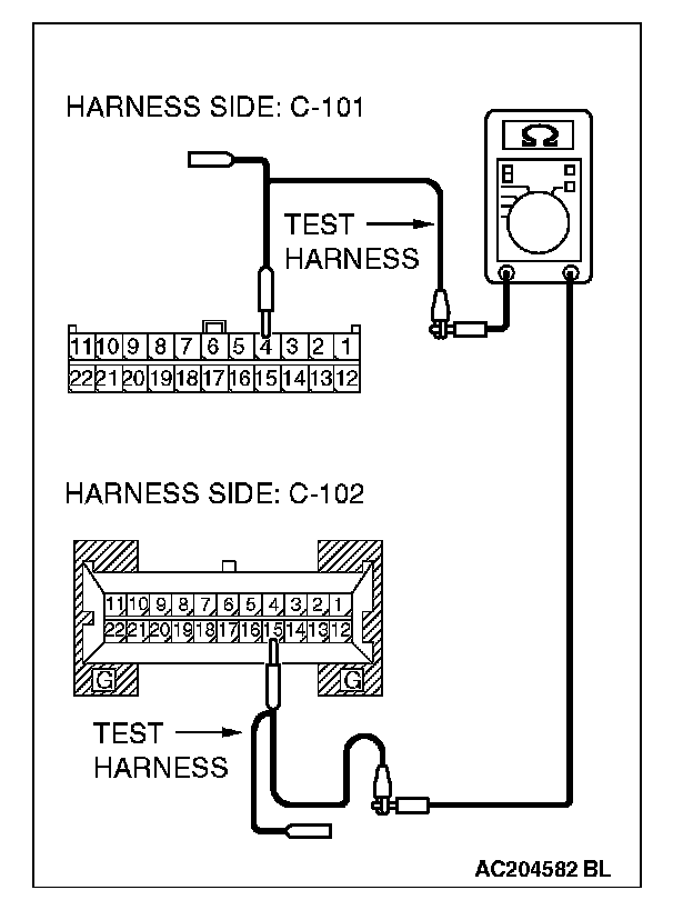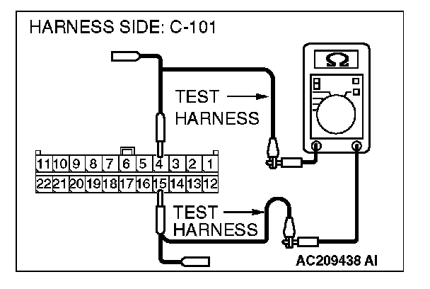 1. Disconnect joint connector (4) C-101, and measure the resistance at the wiring harness side of joint connector (4) C-101.