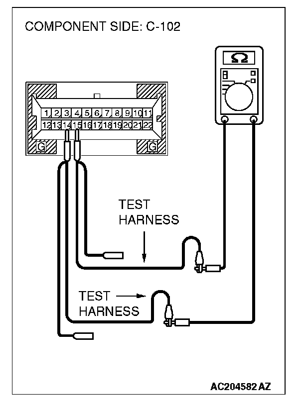 1. Disconnect combination meter C-102, and measure the resistance at the equipment side of combination meter connector C-102.