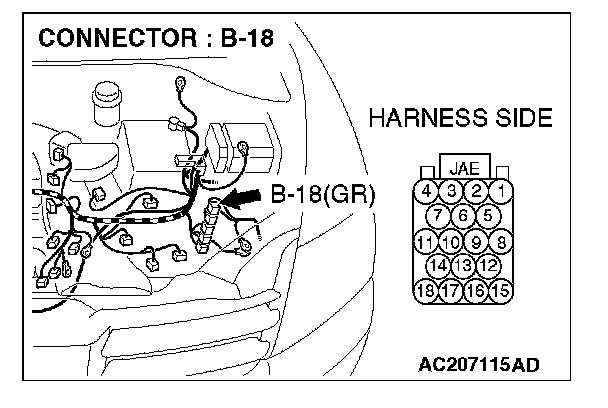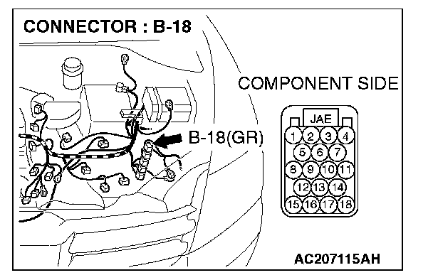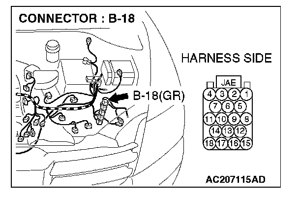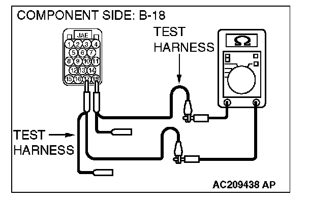 1. Disconnect powertrain control module connector B-18, and measure the resistance at the equipment side of powertrain control module connector B-18.