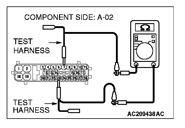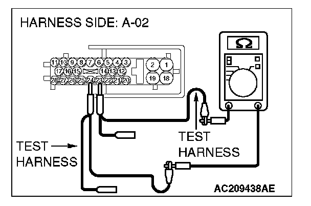 1. Disconnect ABS/TCL-ECU connector A-02, and measure the resistance at the equipment side of ABS/TCL-ECU connector A-02.