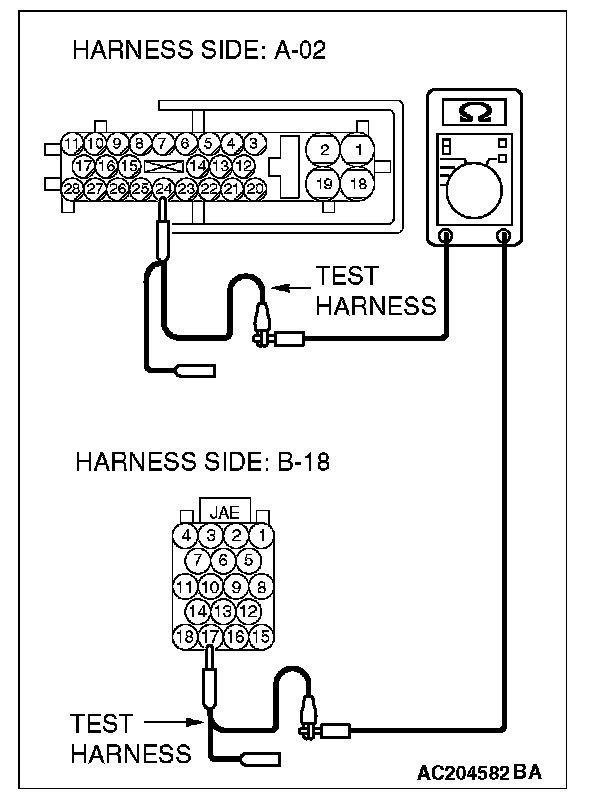 - The test wiring harness should be used.
