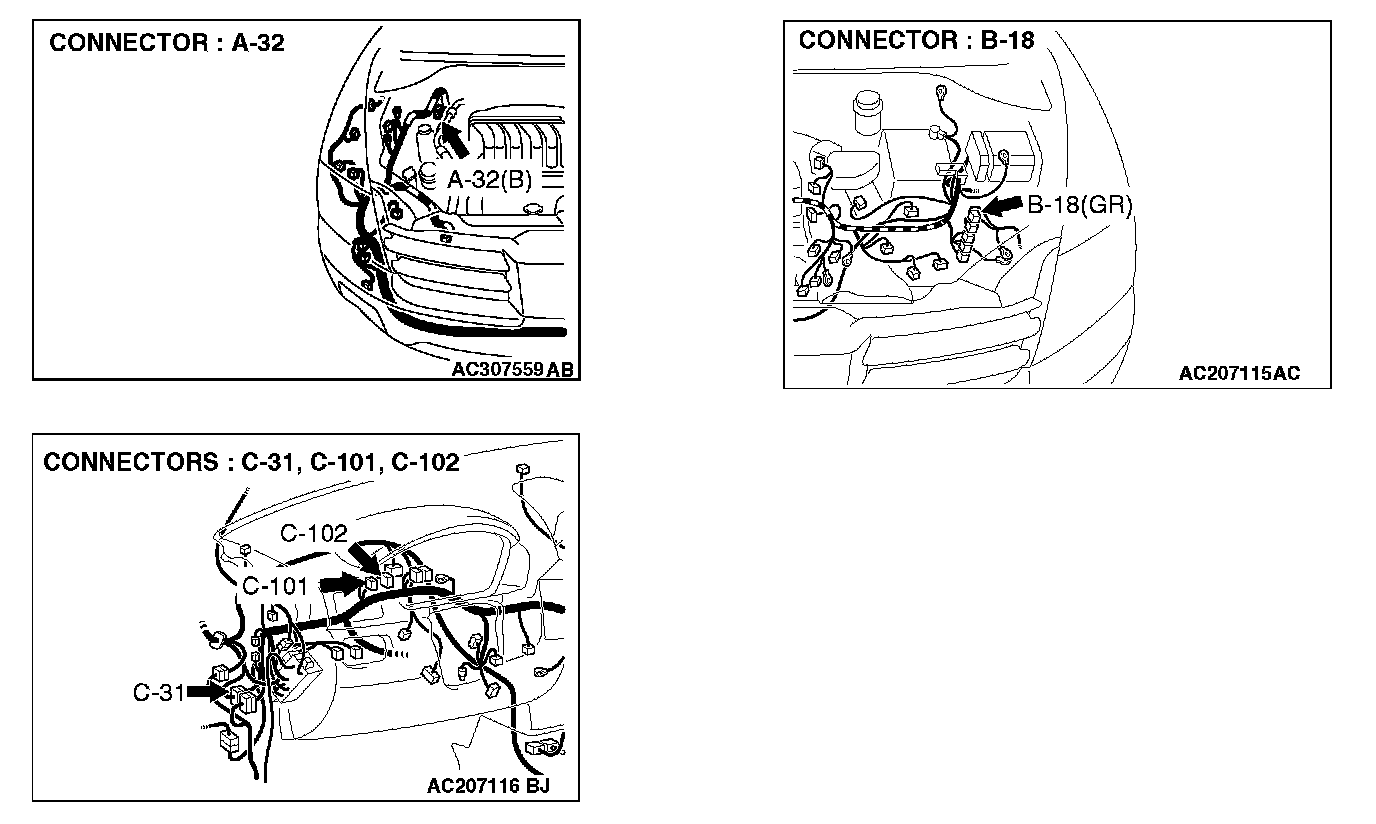 STEP 1. Check intermediate connector C-31 for loose, corroded or damaged terminals, or terminals pushed back in the connector.
