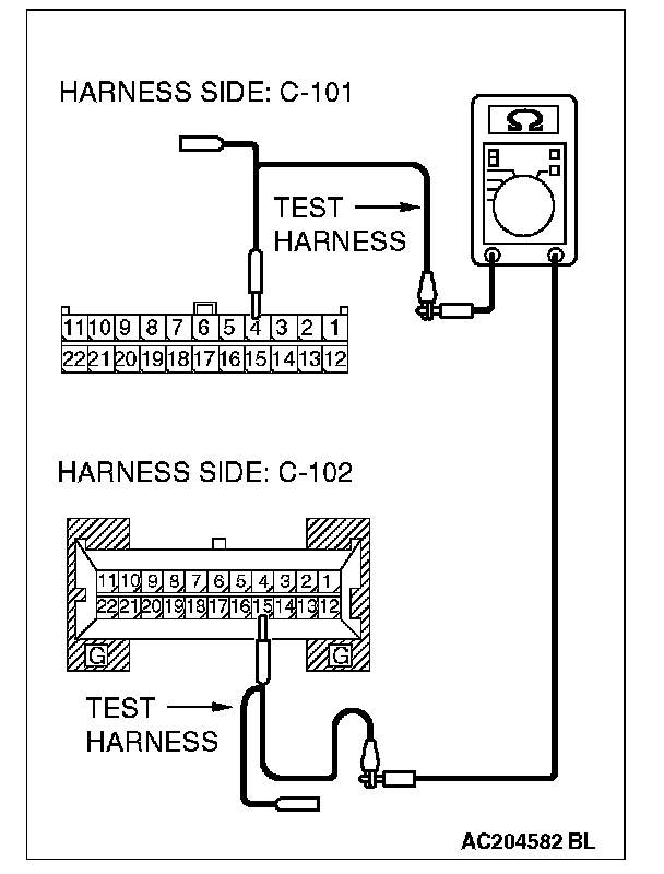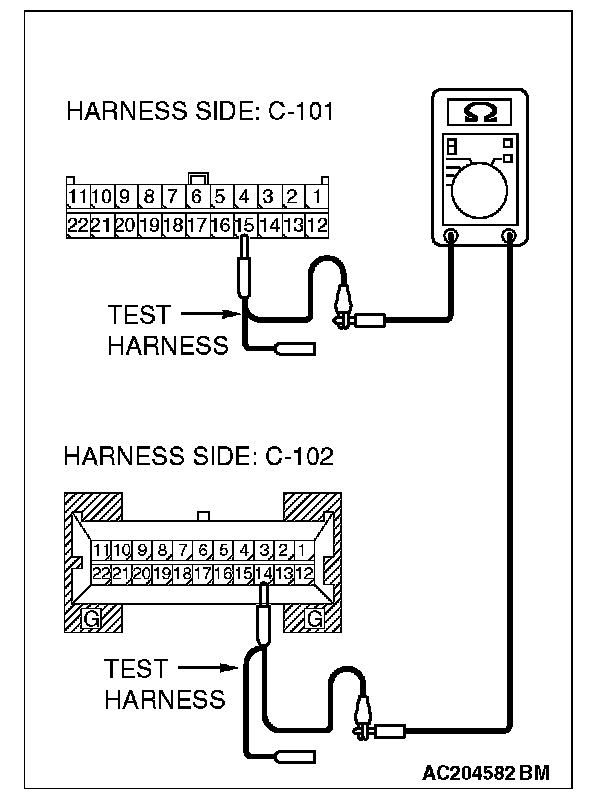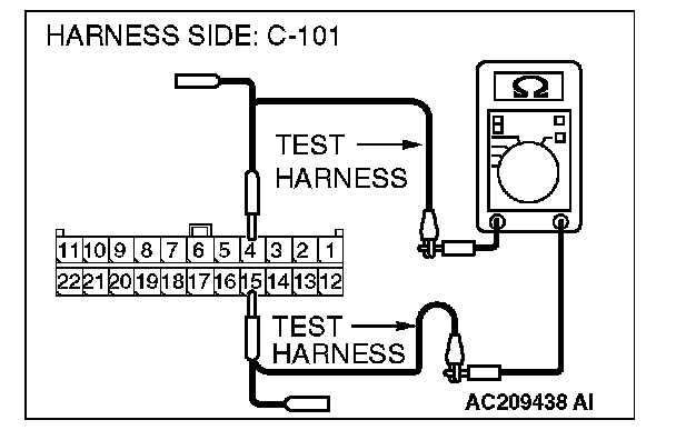 1. Disconnect joint connector (4) C-101, and measure the resistance at the wiring harness side of joint connector (4) C-101.