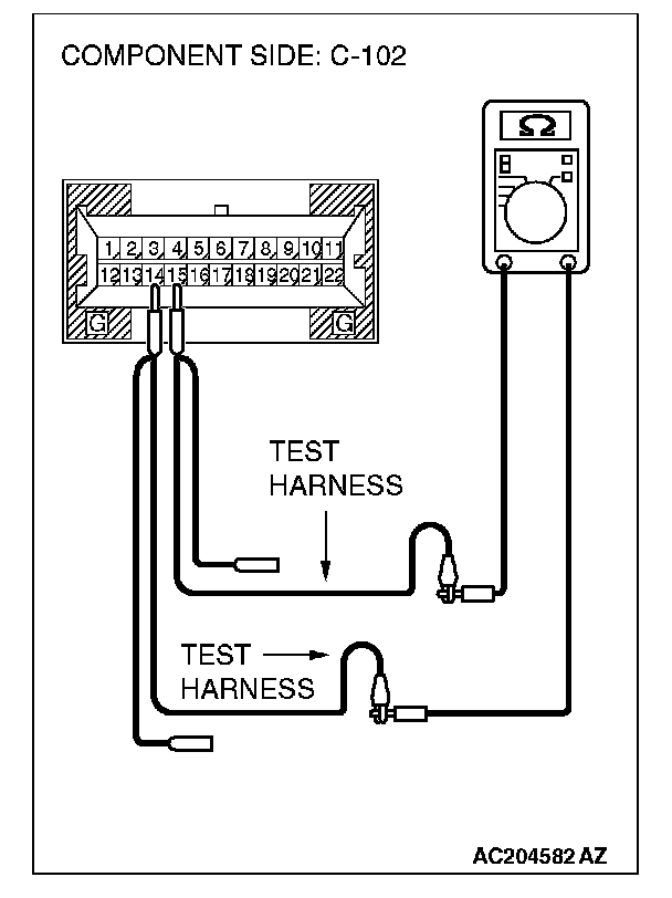 1. Disconnect combination meter C-102, and measure the resistance at the equipment side of combination meter connector C-102.