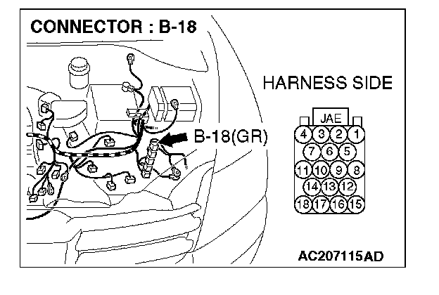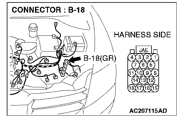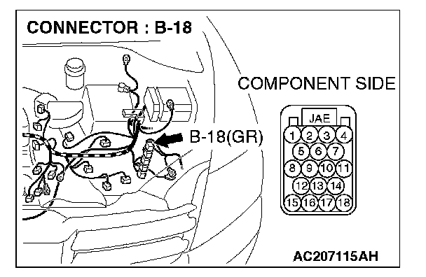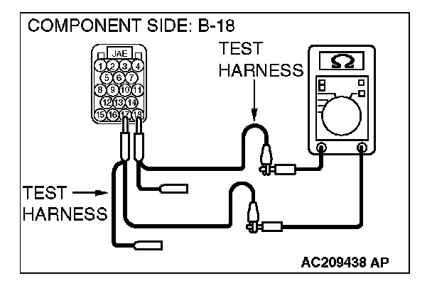 1. Disconnect powertrain control module connector B-18, and measure the resistance at the equipment side of powertrain control module connector B-18.