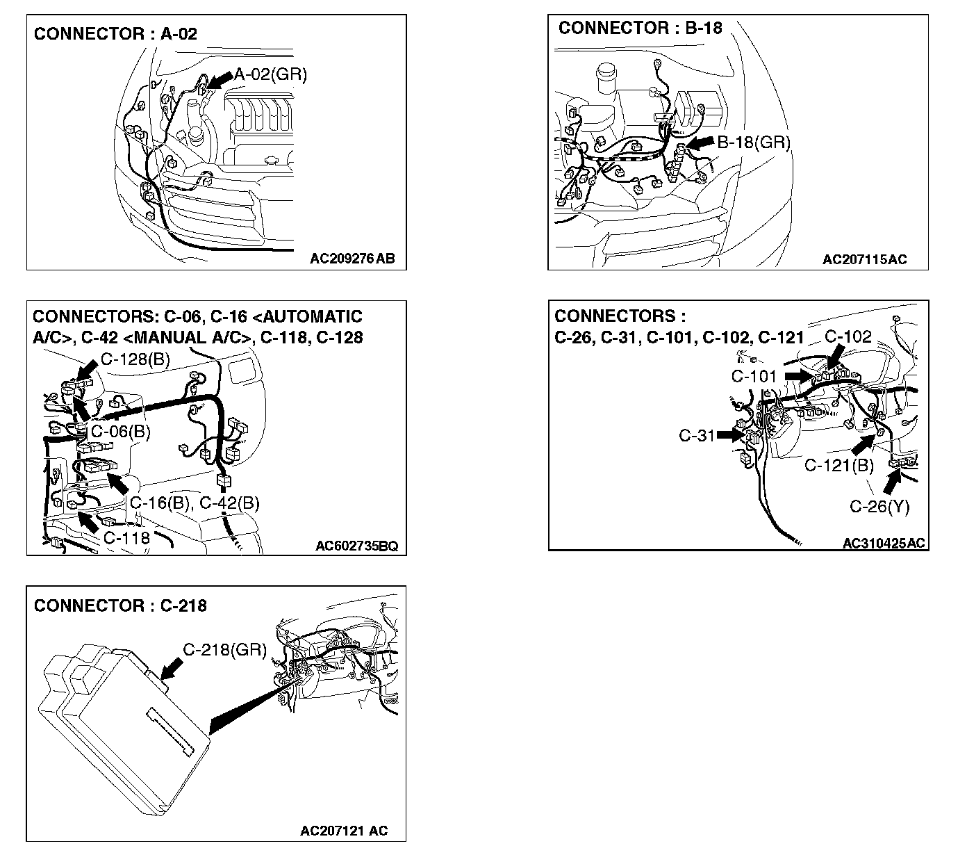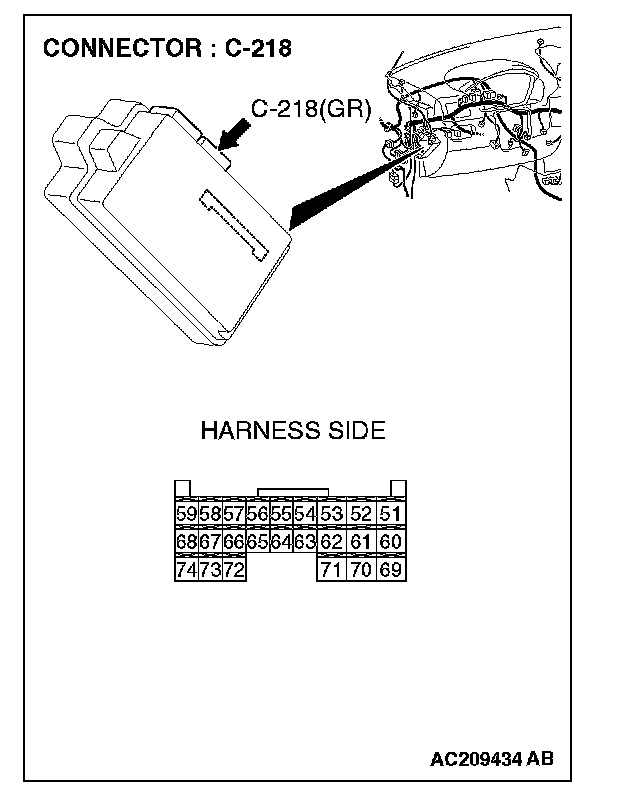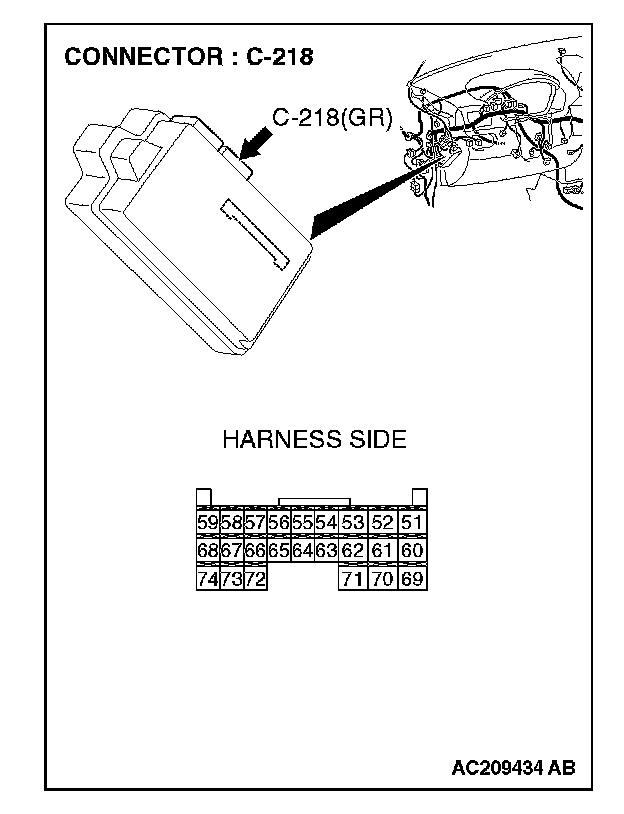 STEP 8. Check ETACS-ECU connector C-218 for loose, corroded or damaged terminals, or terminals pushed back in the connector.