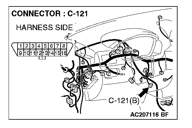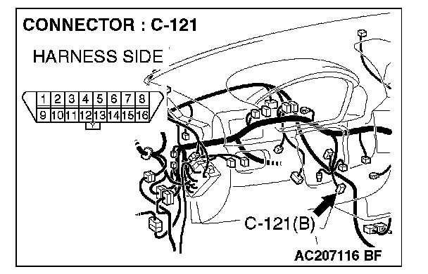 STEP 1. Check data link connector C-121 for loose, corroded or damaged terminals, or terminals pushed back in the connector.