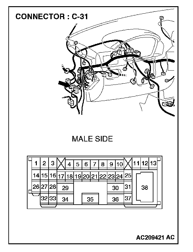 STEP 3. Check intermediate connector C-31 for loose, corroded or damaged terminals, or terminals pushed back in the connector.