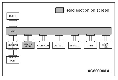 If the M.U.T.-III cannot received signals from ECUs, CAN bus line connector(s) are broken or an open circuit has occurred.