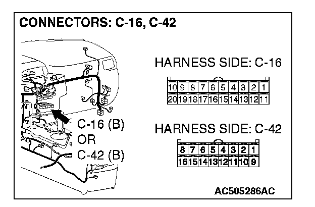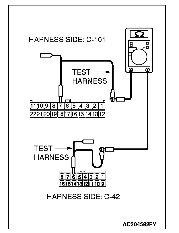 STEP 13. Check the CAN bus lines between joint connector (4) and the A/C-ECU. Measure the resistance between joint connector (4) C-101 and A/C-ECU connector C-42
