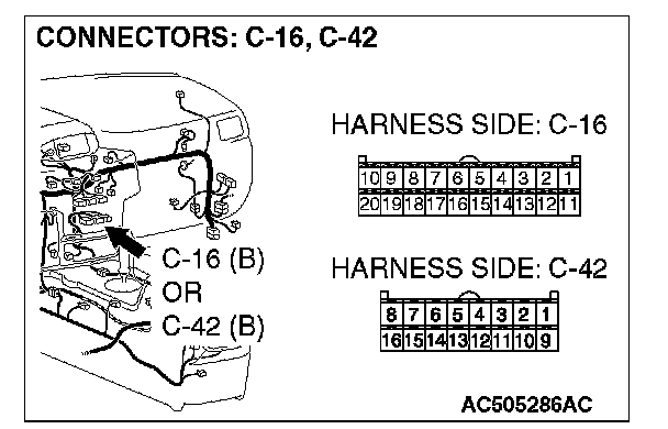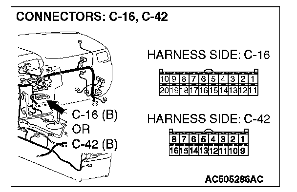 STEP 12. Using scan tool MB991958, diagnose the CAN bus line (Disconnect A/C-ECU connector C-42