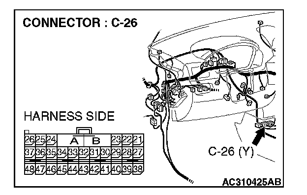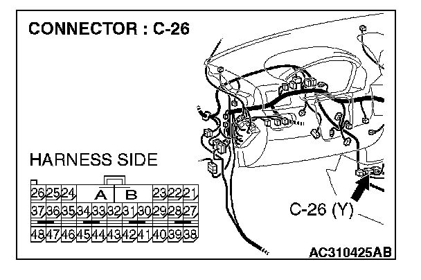 STEP 14. Check SRS-ECU connector C-26 for loose, corroded or damaged terminals, or terminals pushed back in the connector.
