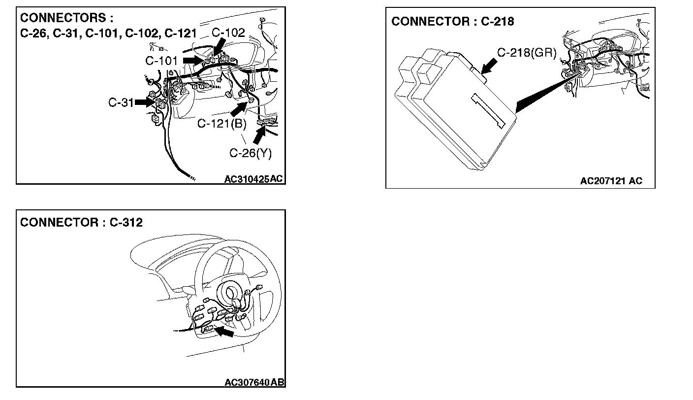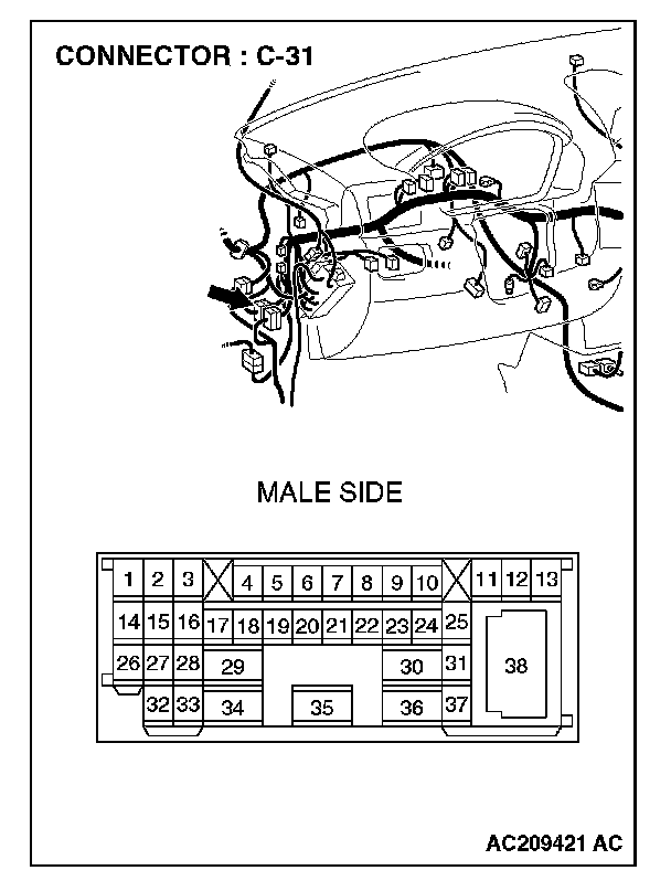STEP 3. Check intermediate connector C-31 for loose, corroded or damaged terminals, or terminals pushed back in the connector.