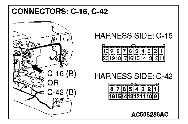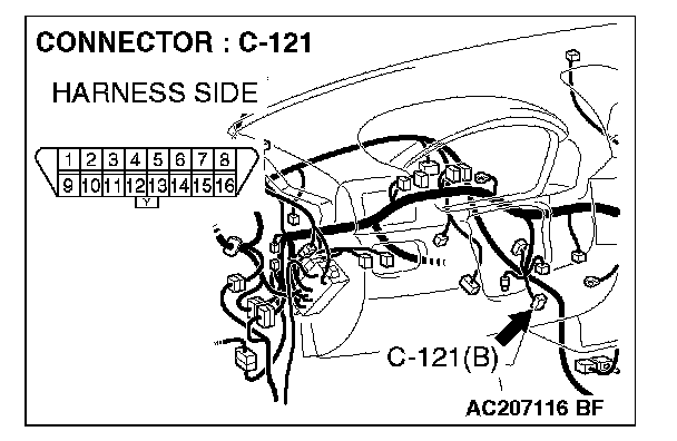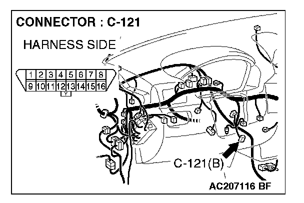STEP 1. Check data link connector C-121 for loose, corroded or damaged terminals, or terminals pushed back in the connector.