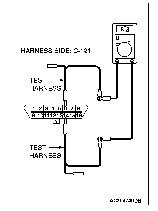 STEP 2. Check the CAN bus lines at the data link connector. Measure the resistance at the data link connector C-121.