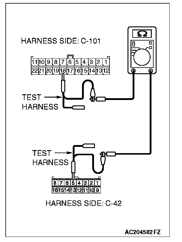 STEP 13. Check the CAN bus lines between joint connector (4) and the A/C-ECU. Measure the resistance between joint connector (4) C-101 and A/C-ECU connector C-42