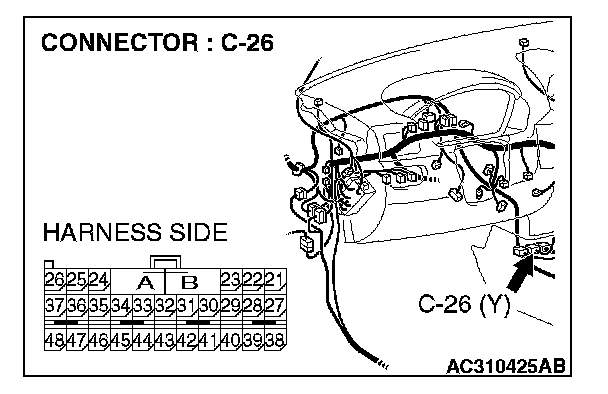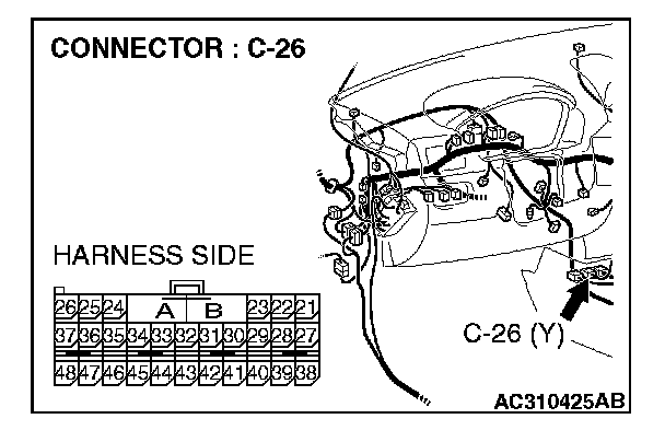 STEP 14. Check SRS-ECU connector C-26 for loose, corroded or damaged terminals, or terminals pushed back in the connector.