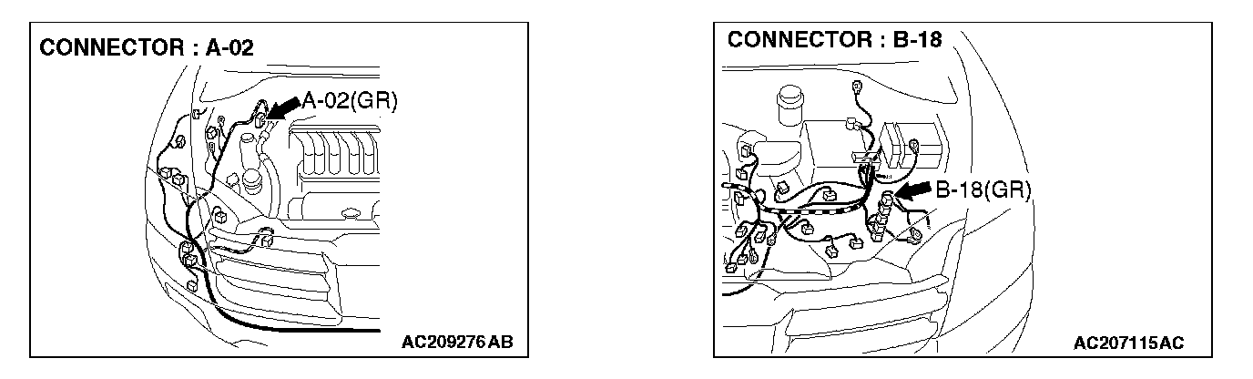 STEP 1. Check ABS/TCL-ECU connector A-02 and powertrain control module connector B-18 for loose, corroded or damaged terminals, or terminals pushed back in the connector.