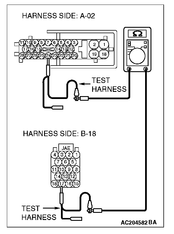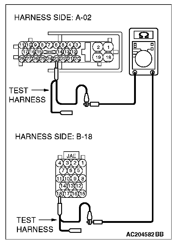 - The test wiring harness should be used.