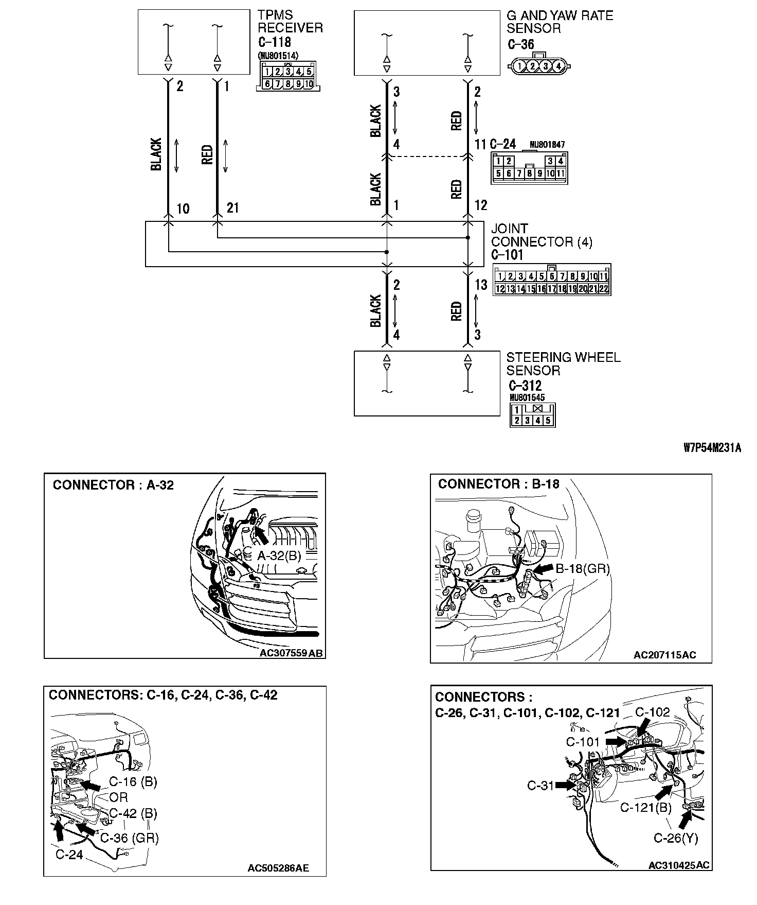 Q: Is steering wheel sensor connector C-312 in good condition?