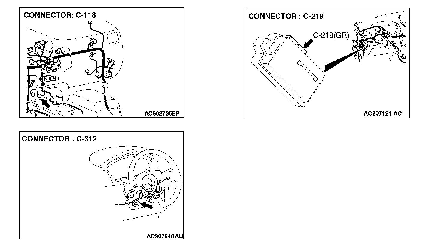 STEP 26. Check steering wheel sensor connector C-312 for loose, corroded or damaged terminals, or terminals pushed back in the connector.