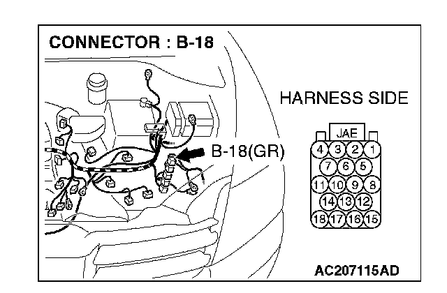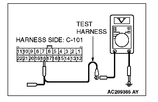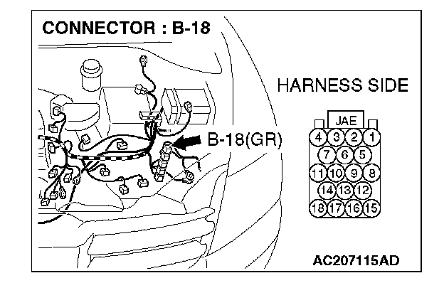3. Measure the voltage between joint connector (4) terminal 18 and body ground.