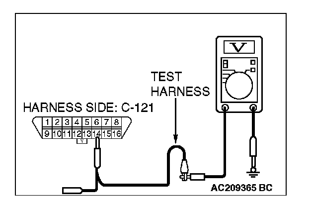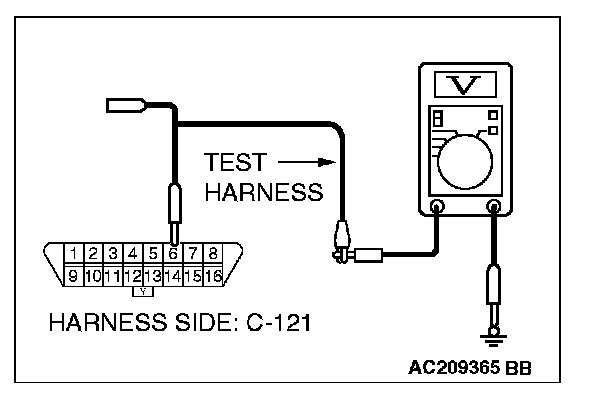 1. Disconnect powertrain control module connector B-18 and combination meter connector C-102, and measure the voltage at the harness side of data link connector C-121.