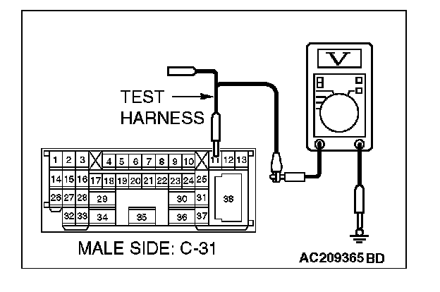 3. Measure the voltage between intermediate connector C-31 terminal 11 and body ground.