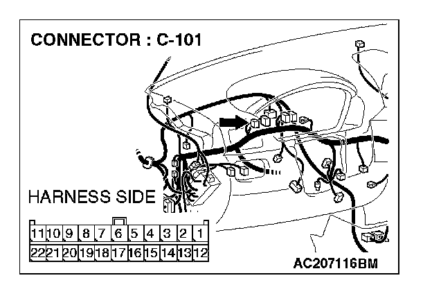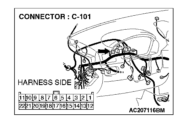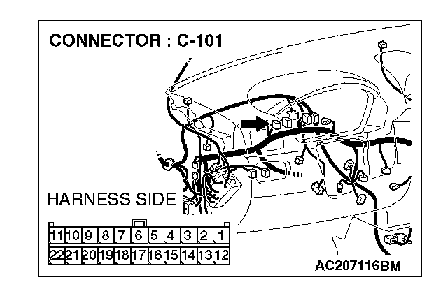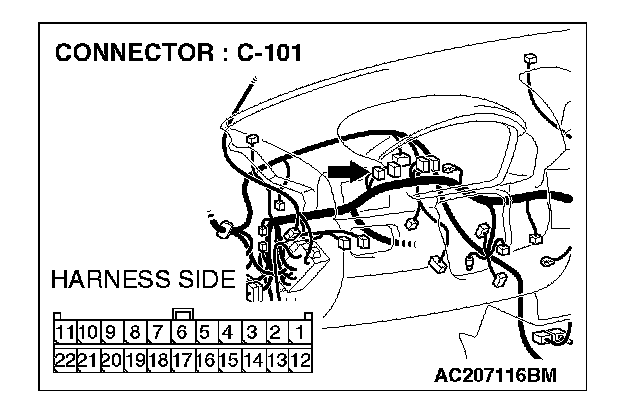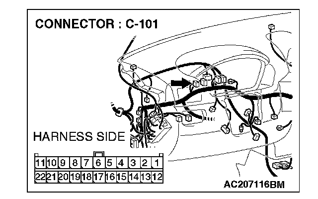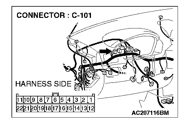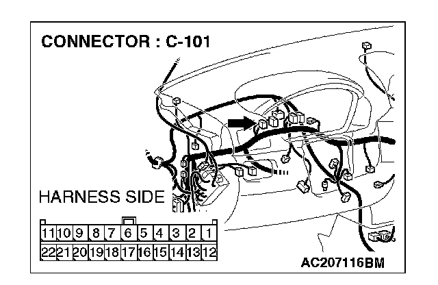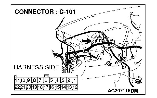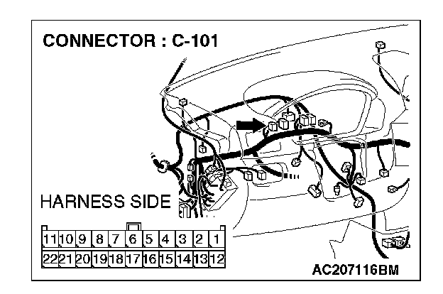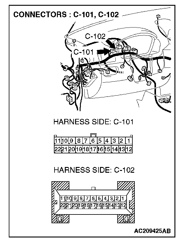 STEP 6. Check joint connector (4) C-101 for loose, corroded or damaged terminals, or terminals pushed back in the connector.