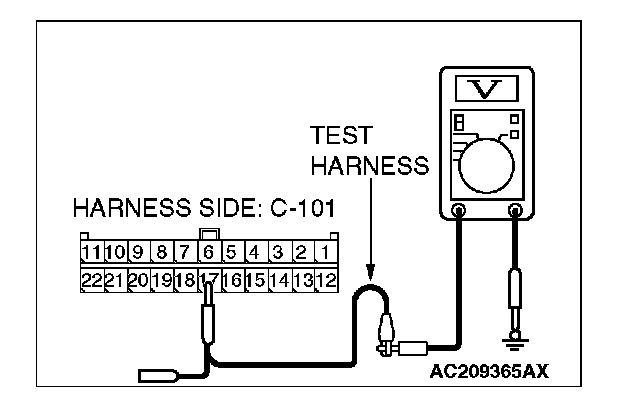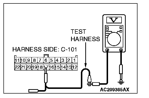 3. Measure the voltage between joint connector (4) terminal 17 and body ground.