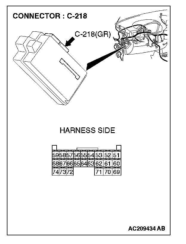 STEP 10. Check ETACS-ECU connector C-218 for loose, corroded or damaged terminals, or terminals pushed back in the connector.