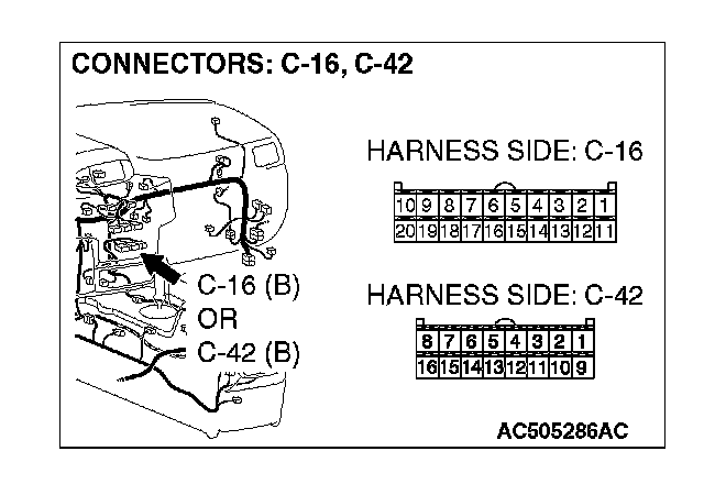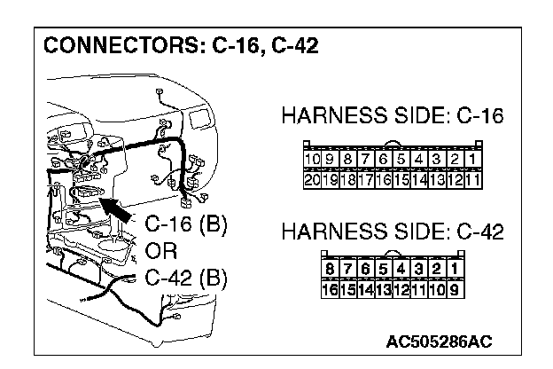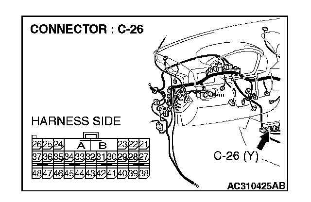 STEP 16. Check SRS-ECU connector C-26 for loose, corroded or damaged terminals, or terminals pushed back in the connector.
