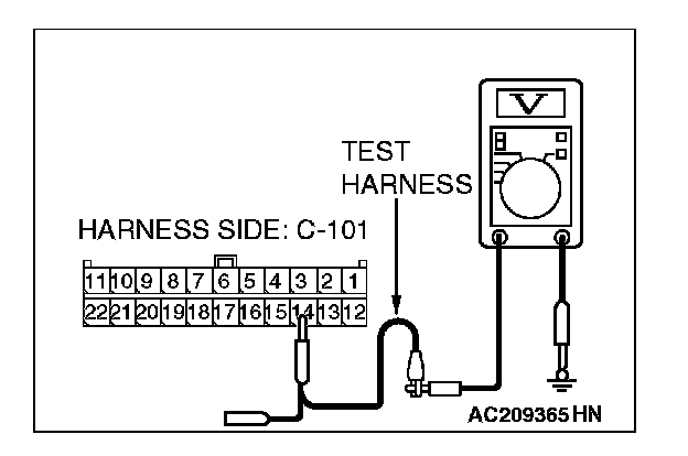 3. Measure the voltage between joint connector (4) terminal 14 and body ground.