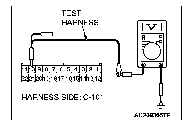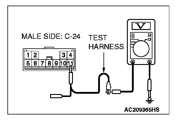 3. Measure the voltage between intermediate connector terminal 11 and body ground.