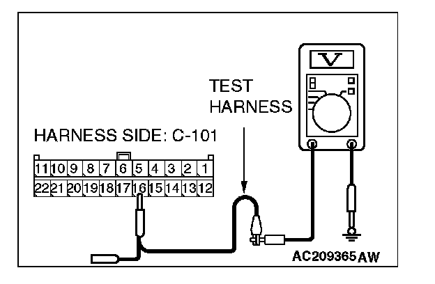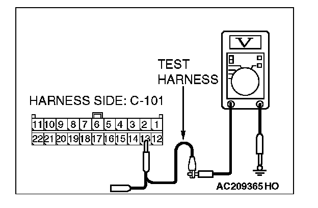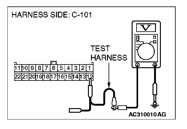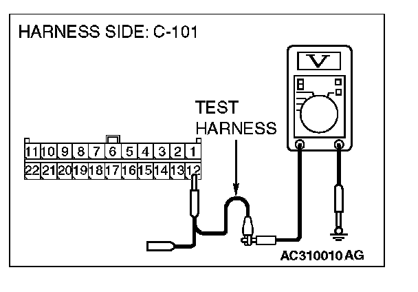 1. Disconnect intermediate connector C-24 and joint connector (4) C-101, and measure the voltage at the wiring harness side of joint connector (4) C-101.