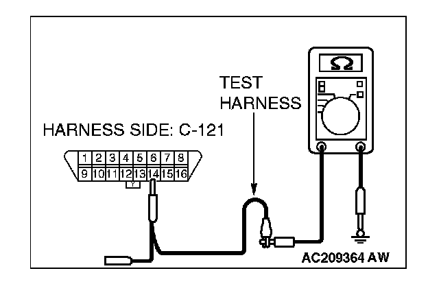 4. Measure the resistance between joint connector (4) terminal 14 and body ground.