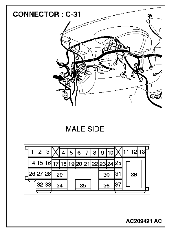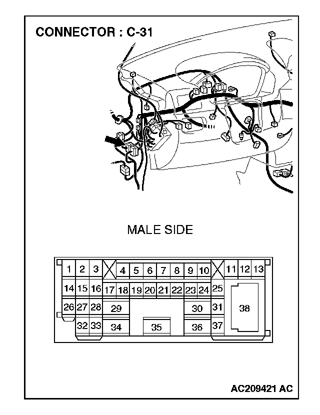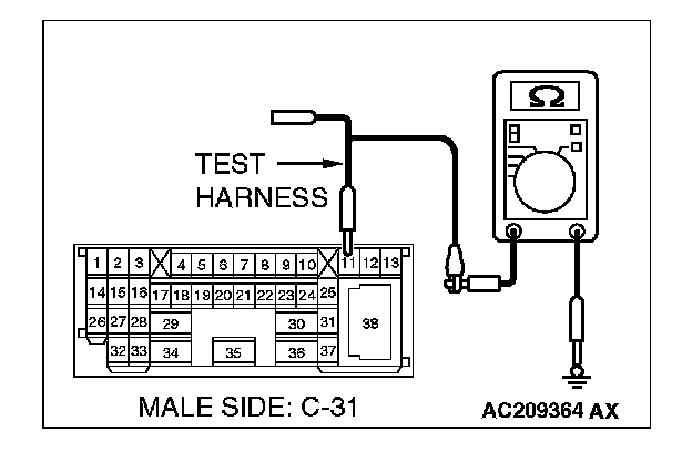 1. Disconnect intermediate connector C-31, and measure the resistance at the male side (at front wiring harness side).