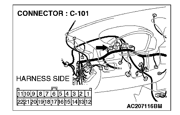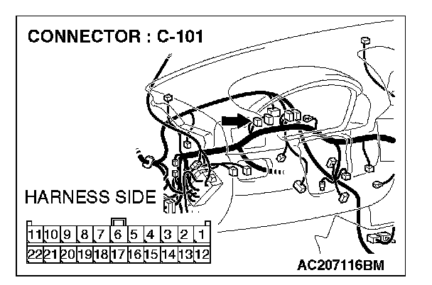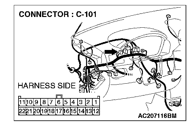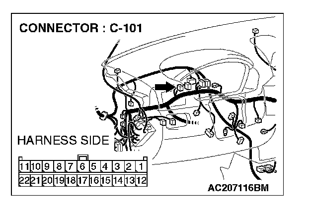 STEP 6. Check joint connector (4) C-101 for loose, corroded or damaged terminals, or terminals pushed back in the connector.