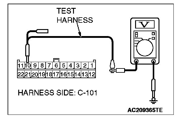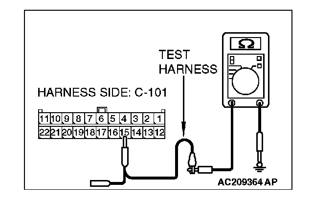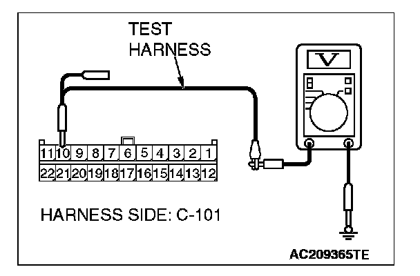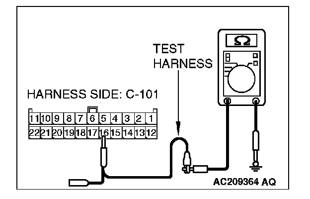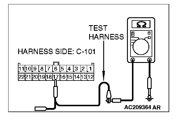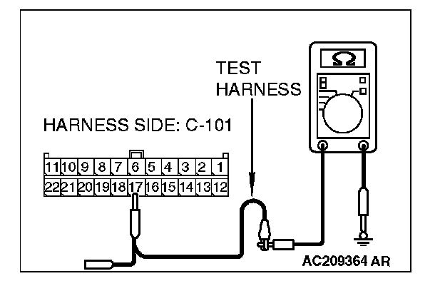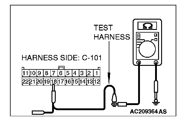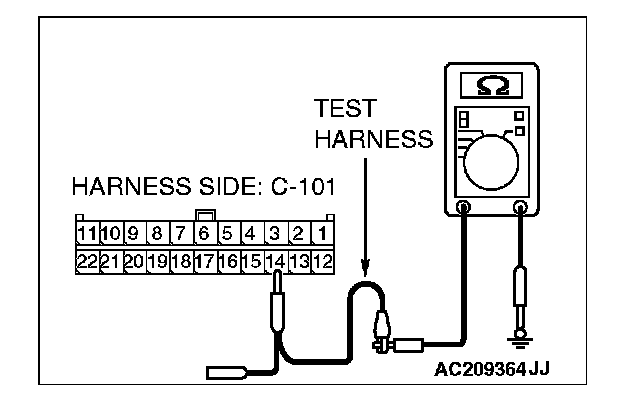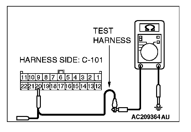 1. Disconnect joint connector (4) C-101 and ETACS-ECU connector C-218, and measure the resistance at the wiring harness side of joint connector (4) C-101.