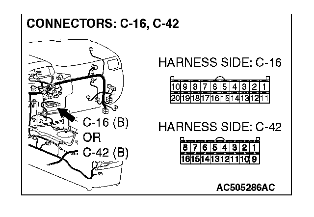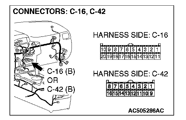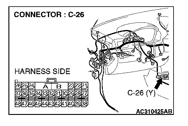 STEP 16. Check SRS-ECU connector C-26 for loose, corroded or damaged terminals, or terminals pushed back in the connector.