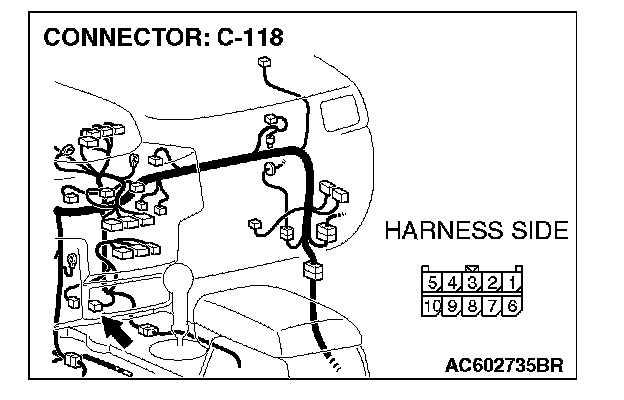 STEP 19. Check TPMS receiver connector C-118 for loose, corroded or damaged terminals, or terminals pushed back in the connector.
