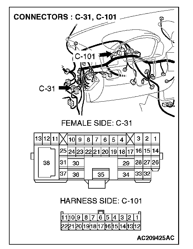 STEP 4. Check intermediate connector C-31 for loose, corroded or damaged terminals, or terminals pushed back in the connector.