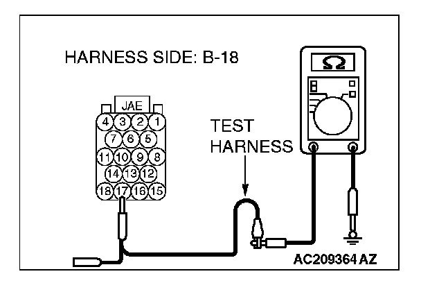 4. Measure the resistance between joint connector (4) terminal 18 and body ground.