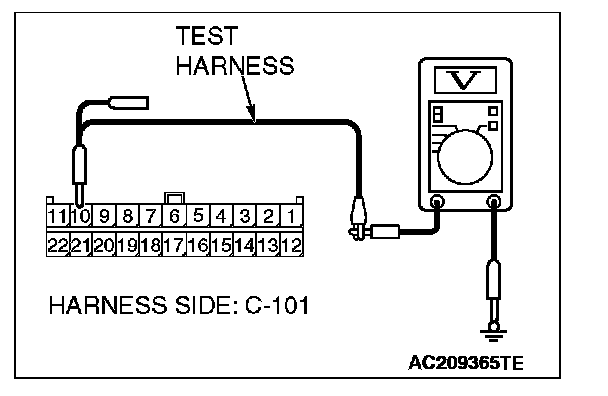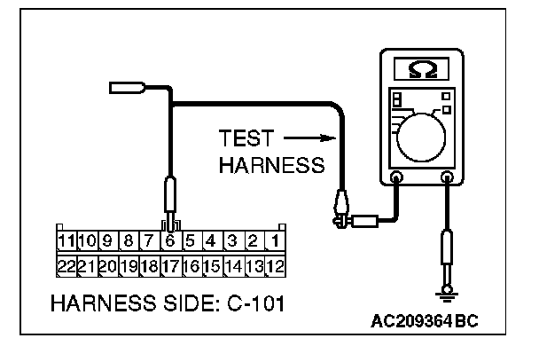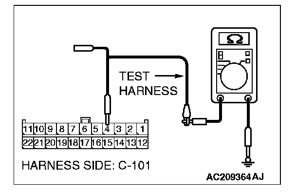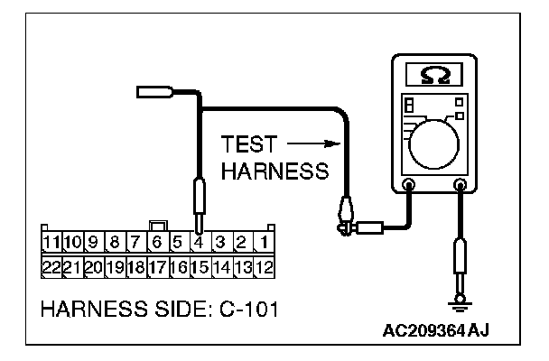 1. Disconnect joint connector (4) C-101 and ETACS-ECU connector C-218, and measure the resistance at the wiring harness side of joint connector (4) C-101.