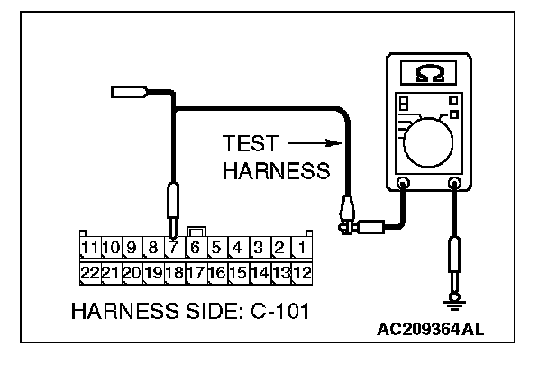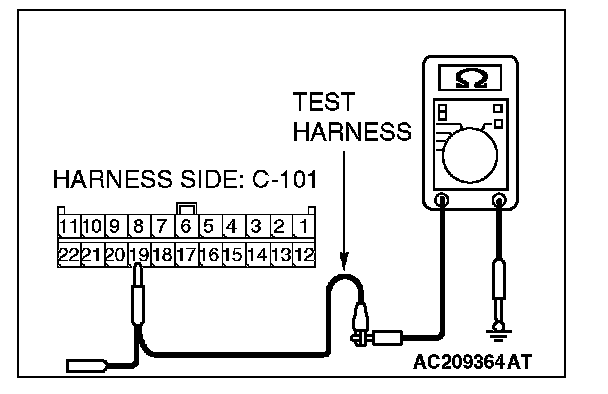 STEP 21. Check the CAN_H line (communication line including the multi-center display unit (middle-grade type or vehicles with Mitsubishi multi communication system) ) between joint connector (4) and multi-center display connector for short to ground. Measure the resistance at joint connector (4) C-101.