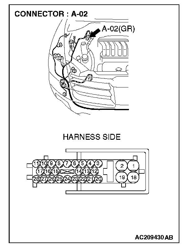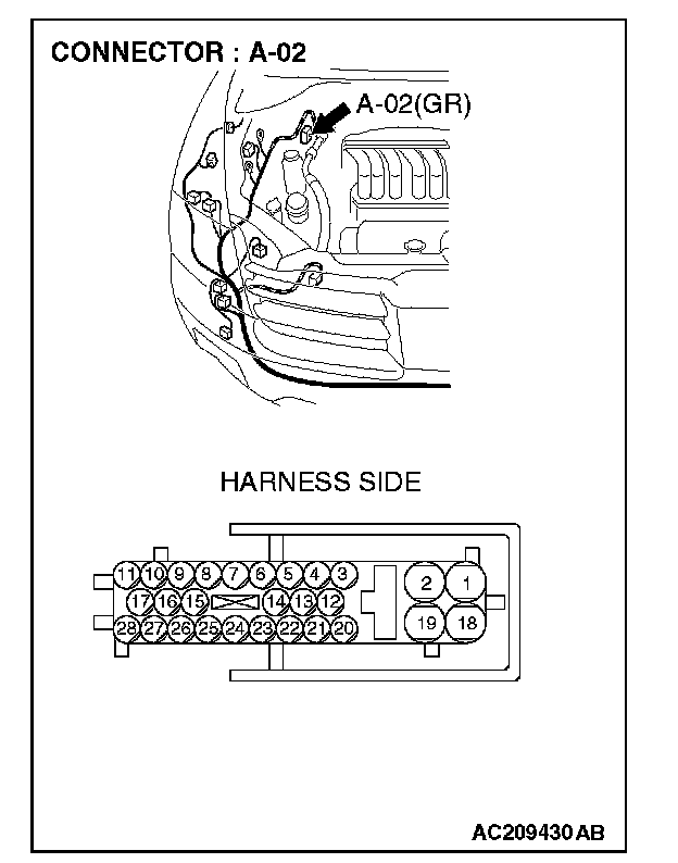 STEP 26. Check ABS/TCL-ECU connector A-02 for loose, corroded or damaged terminals, or terminals pushed back in the connector.