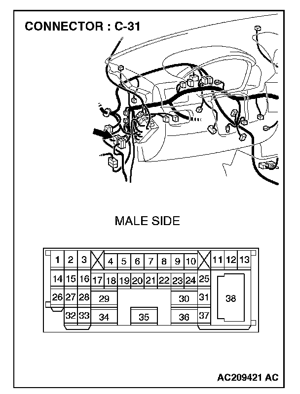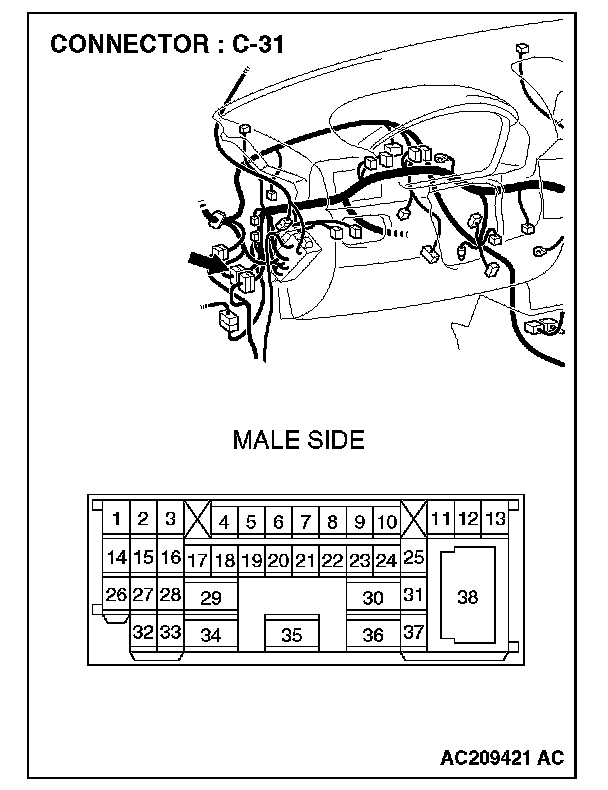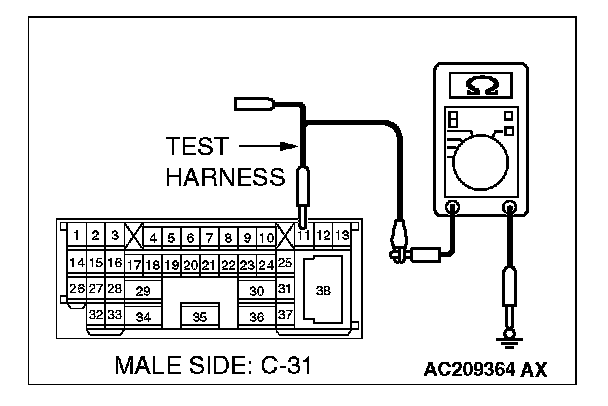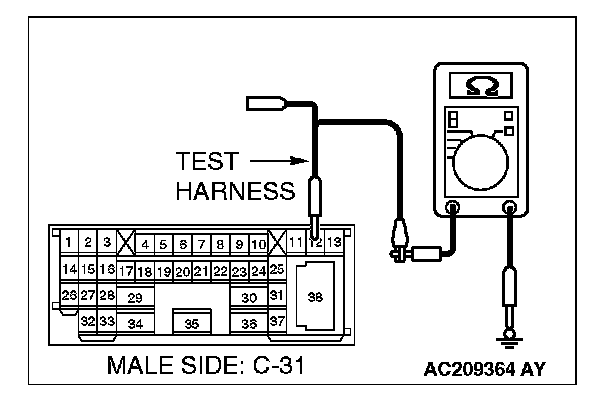1. Disconnect intermediate connector C-31, and measure the resistance at the male side (at front wiring harness side).