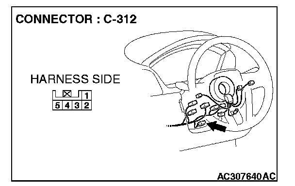 STEP 26. Check steering wheel sensor connector C-312 for loose, corroded or damaged terminals, or terminals pushed back in the connector.