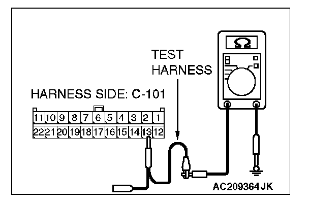 1. Disconnect intermediate connector C-31 and joint connector (4) C-101, and measure the resistance at the wiring harness side of joint connector (4) C-101.