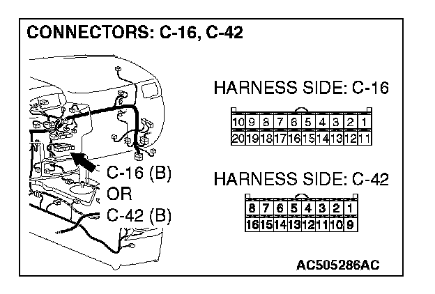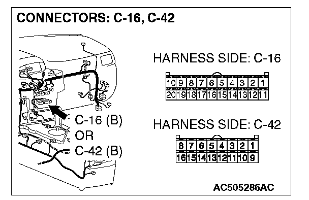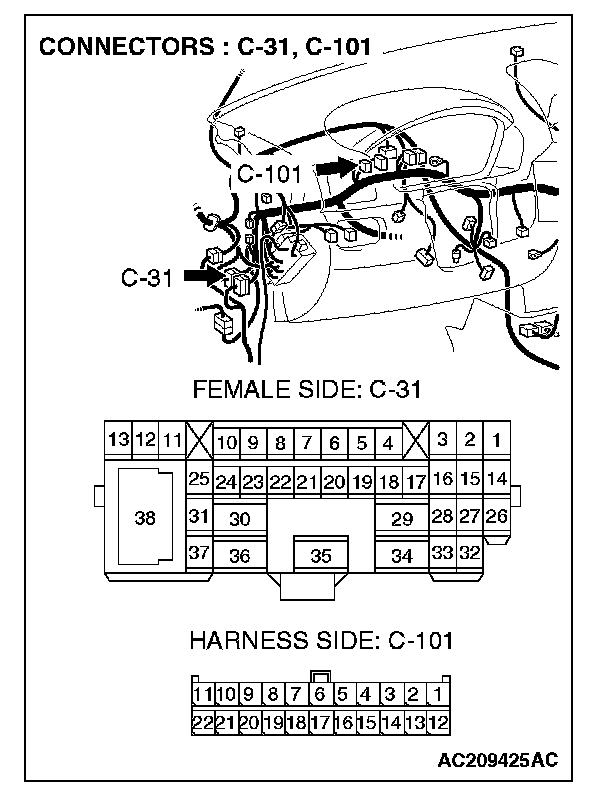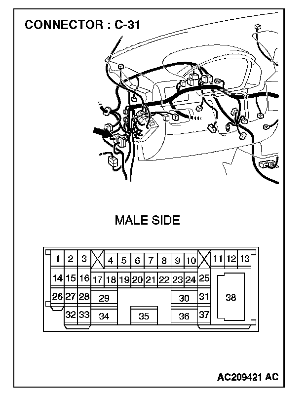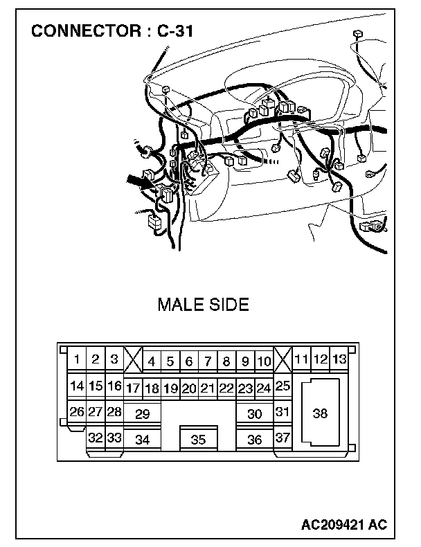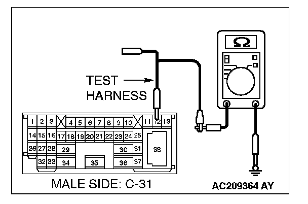 1. Disconnect intermediate connector C-31, and measure the resistance at the male side (at front wiring harness side).